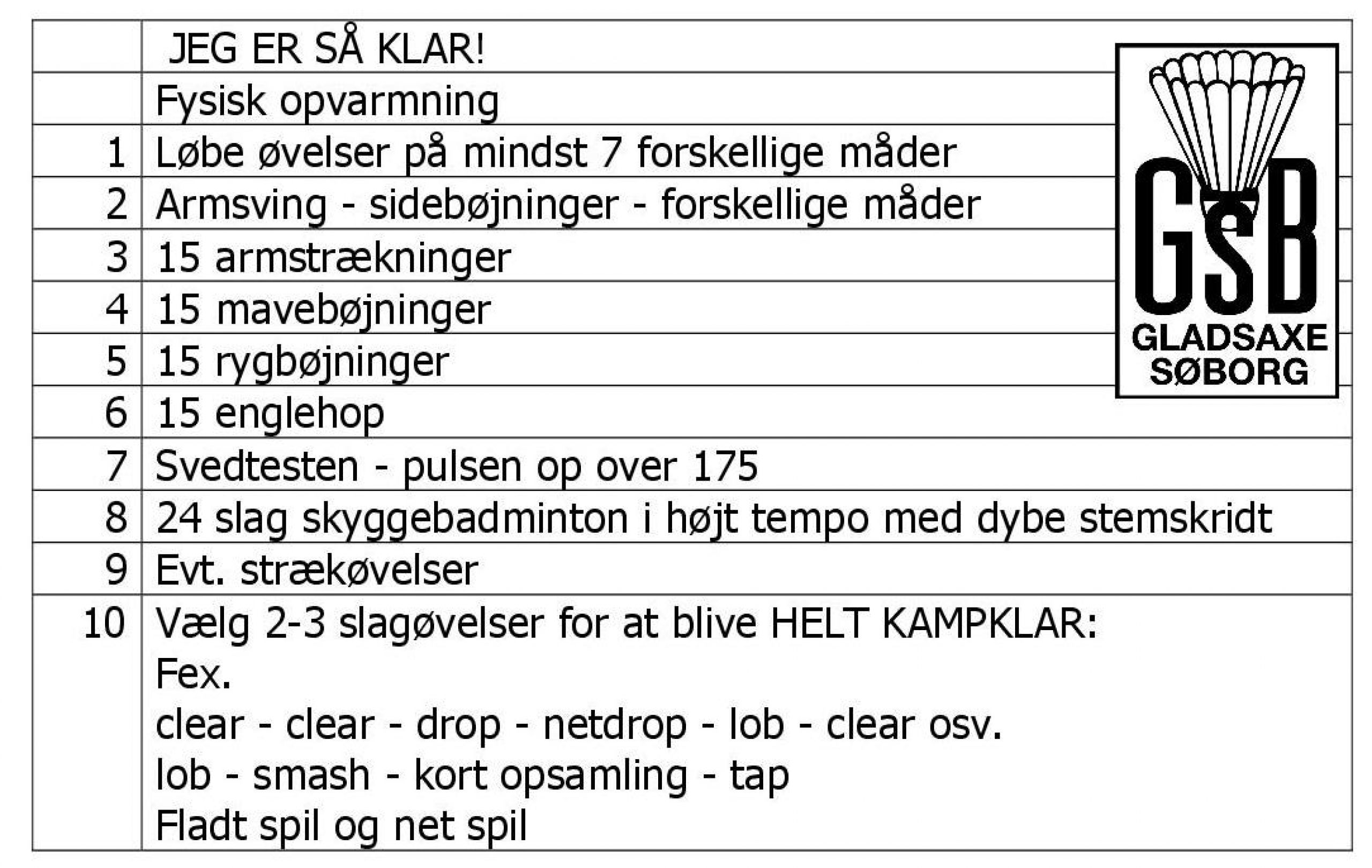 2) Styrketræningsprogram for badmintonspillere - hele kroppen